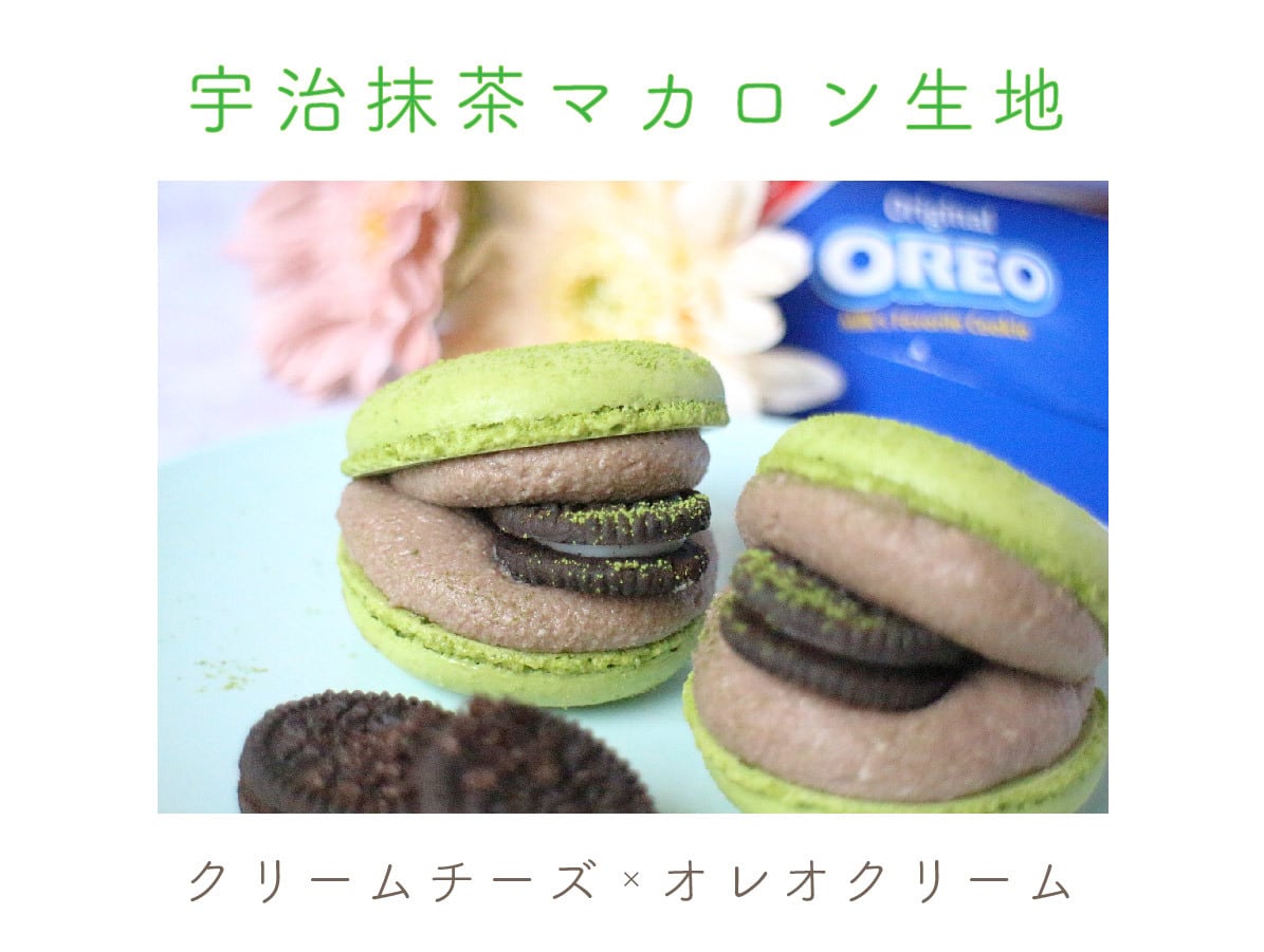 卵白(卵を含む)・砂糖・アーモンドパウダー・クリームチーズ・バター・オレオ(小麦・乳成分・大豆を含む)・抹茶